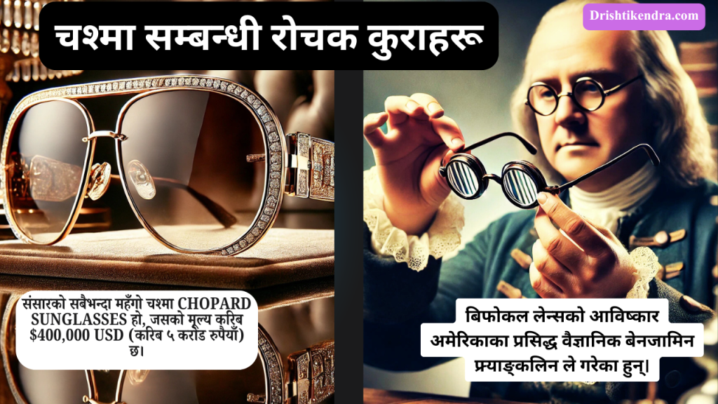 • संसारको सबैभन्दा महँगो चश्मा Chopard Sunglasses हो, जसको मूल्य करिब $400,000 USD (करिब ५ करोड रुपैयाँ) छ।